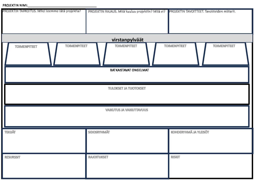 let työstänyt projektin vaikuttavuusketjua ja projektin elementtejä projektikanvasta käyttäen, on aika syventyä projektin aikaiseen tekemiseen ja toimintaan syvemmin.
